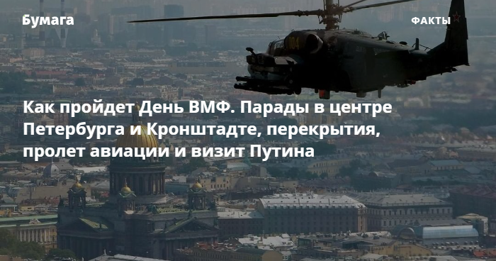 Как пройдет День ВМФ. Парады в центре Петербурга и Кронштадте, перекрытия, пролет авиации и визит Путина