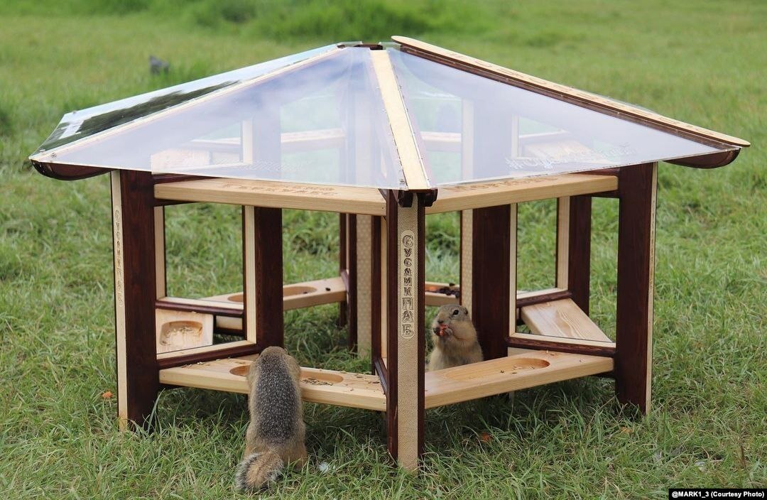 "СусликПаб" уже открывали на острове в прошлом году. Но в конце лета неизвестные разрушили кафе для сусликов, и осенью, когда грызуны впали в спячку, старое здание бара разобрали.