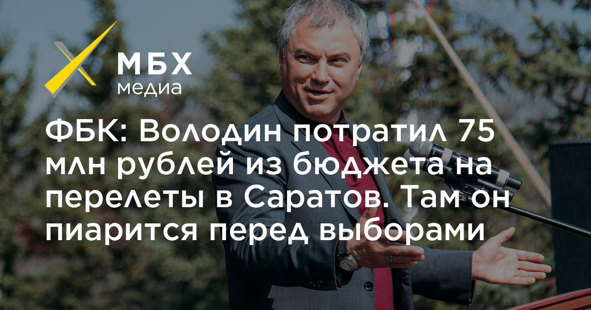 ФБК: Володин потратил 75 млн рублей из бюджета на перелеты в Саратов. Там он пиарится перед выборами