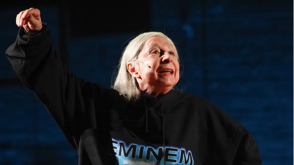 Однажды Ахеджакова уже была бабушкой, только еврейской, — в спектакле Марфы Горвиц по пьесе Людмилы Улицкой «Мой внук Вениамин». Но там был, само собой, другой национальный колорит и текст, не претендующий быть «голосом молодого поколения». О том, что мы сейчас услышим этот самый «голос», неосторожно объявил Виктор Рыжаков перед спектаклем.