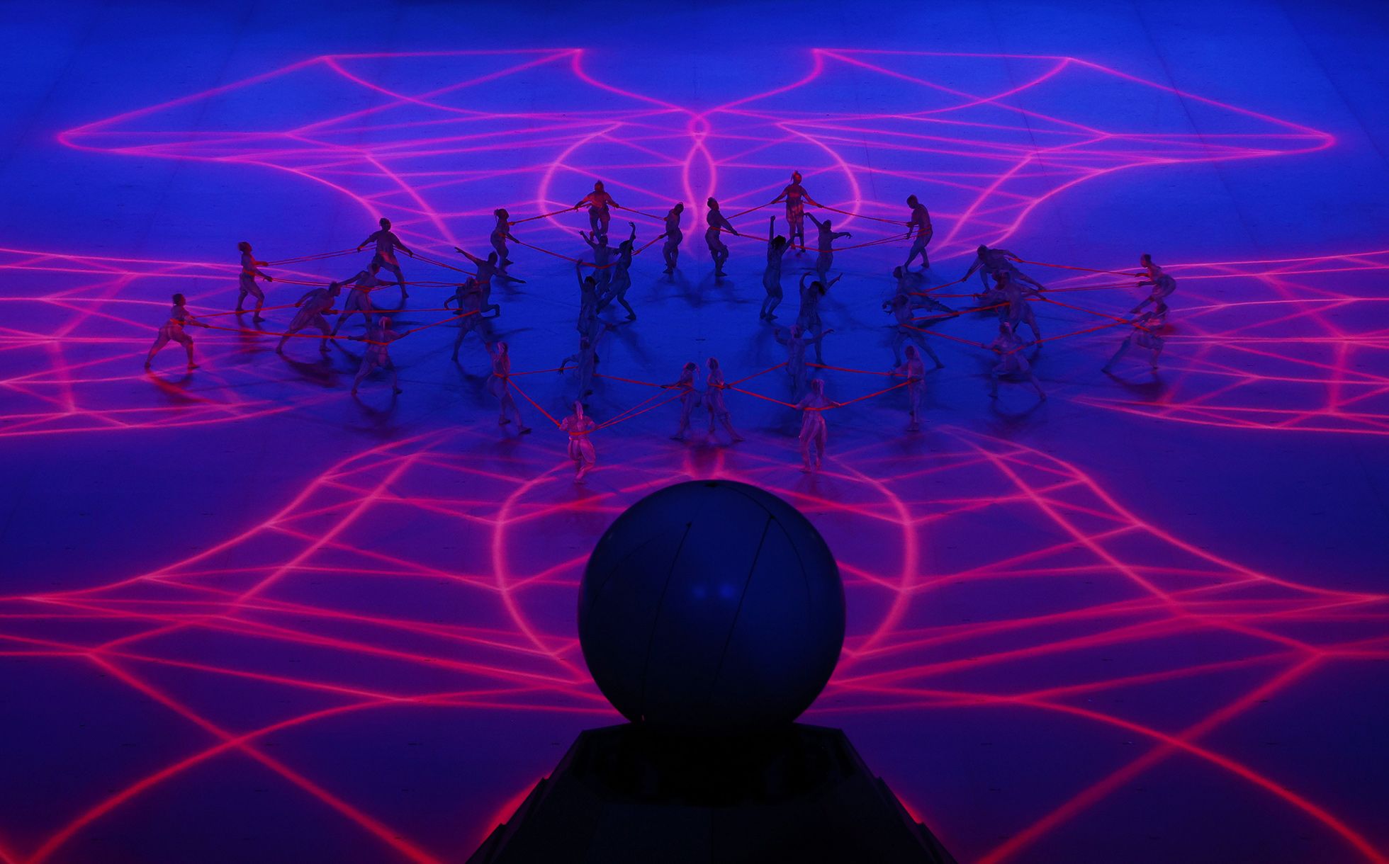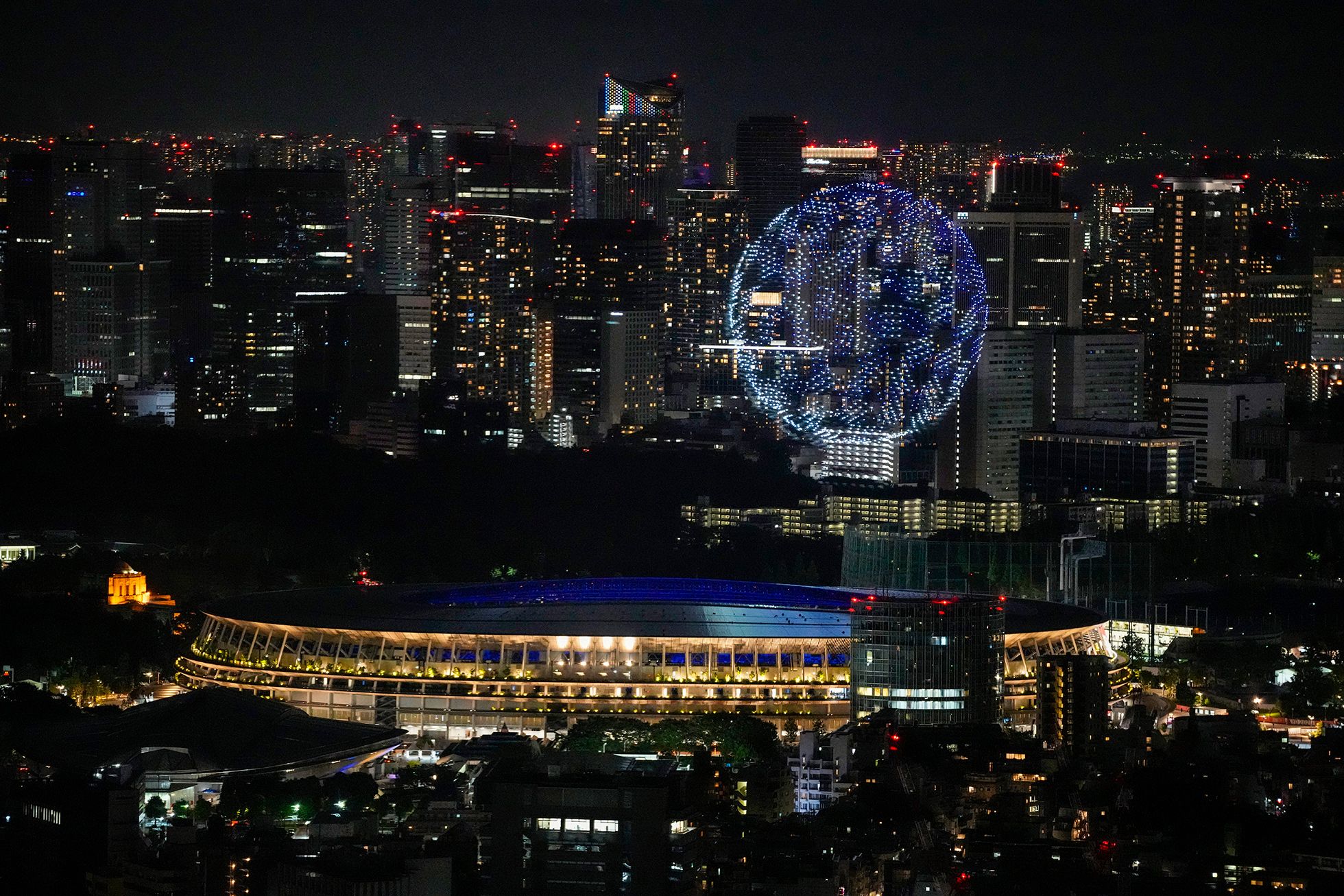 Kiichiro Sato / AP / Scanpix / LETA В церемонии были задействованы 1800 дронов, поднявшихся в небо над стадионом