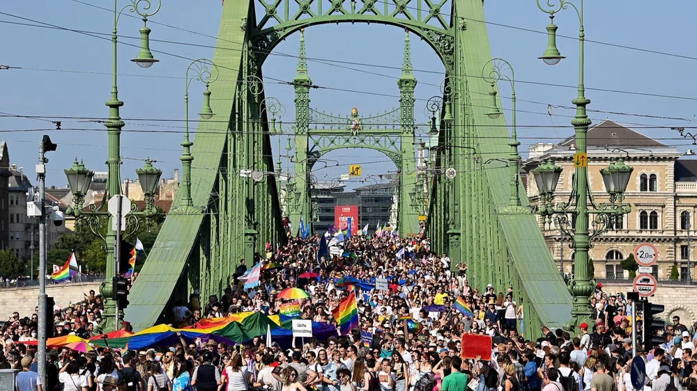 Тысячи жителей Венгрии присоединились к ежегодному «Маршу достоинства» в Будапеште, чтобы поддержать ЛГБТ-сообщество и выступить против закона об «ЛГБТ-пропаганде», передает Reuters.