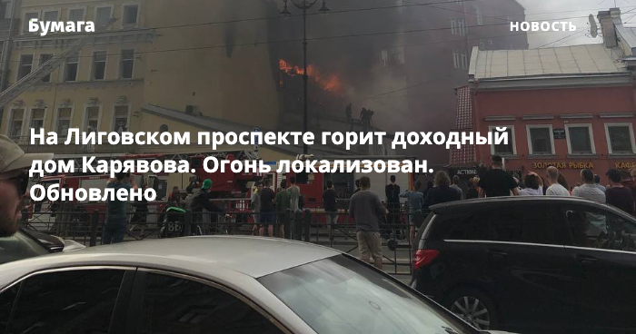На Лиговском проспекте, 115 горит доходный дом О. Е. Карявова. Об этом сообщила пресс-служба ГУ МЧС по Петербургу.
