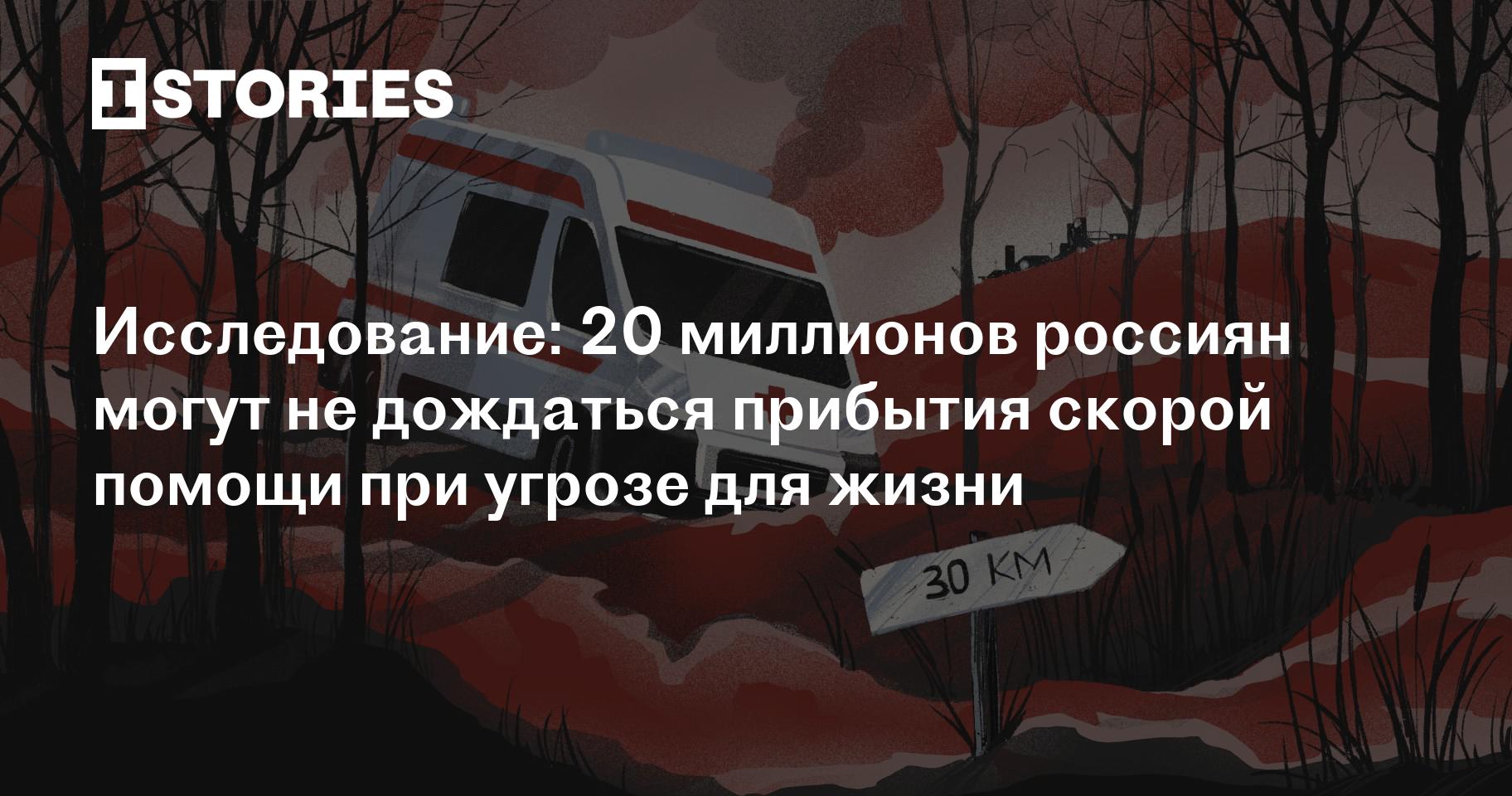 Согласно приказу Минздрава России, скорая помощь должна доезжать до пациента за 20 минут, если его жизни угрожает опасность. «Важные истории» решили посчитать, сколько россиян живет в населенных пунктах, до которых бригадам скорой медицинской помощи невозможно добраться за то время, что необходимо для спасения человека. По нашим подсчетам, 20 миллионов человек, то есть каждый седьмой житель России, будет вынужден дожидаться приезда врача сверх положенного времени. Чтобы проверить свои подсчеты на месте, репортеры «Важных историй» отправились в один из районов Рязанской области, где единственная бригада скорой помощи из трех человек (двух фельдшеров и водителя) обслуживает 40 населенных пунктов — в них живет 10 тысяч жителей.
