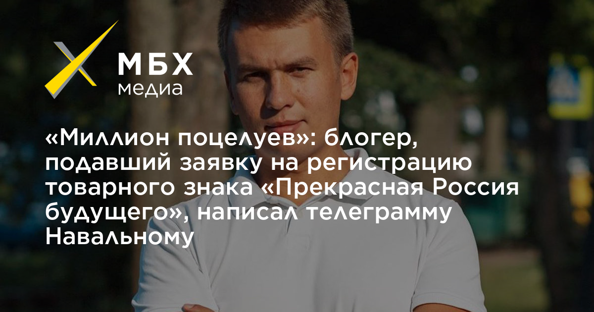 «Миллион поцелуев»: блогер, подавший заявку на регистрацию товарного знака «Прекрасная Россия будущего», написал телеграмму Навальному