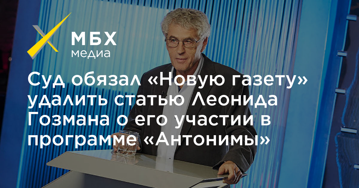 Суд обязал «Новую газету» удалить статью Леонида Гозмана о его участии в программе «Антонимы»