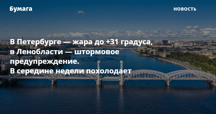 В Петербурге — до +31 градуса, в Ленобласти — гроза