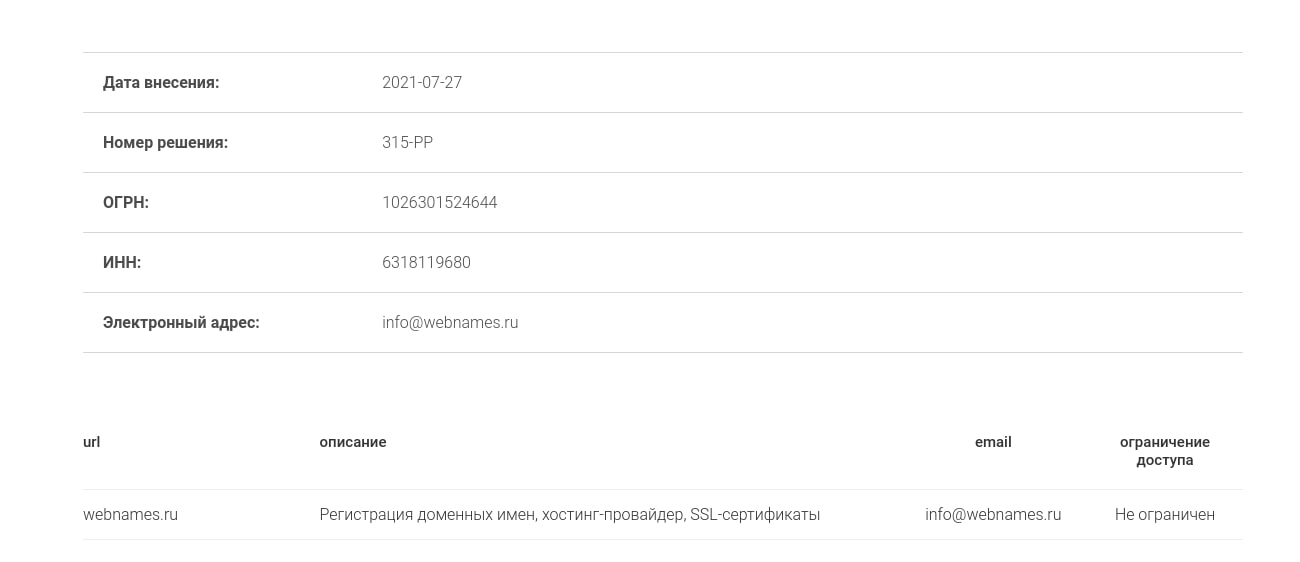 В реестре слежки зарегистрирован ещё один регистратор доменов и хостинг-провайдер