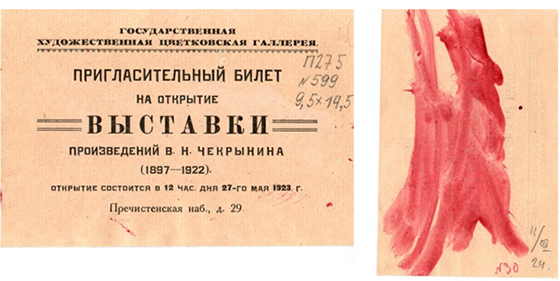 Дочери Чекрыгина в это время было два года. В их доме остались пригласительные билеты на выставку, на обороте которых маленькая Нина делала свои первые рисунки [8].