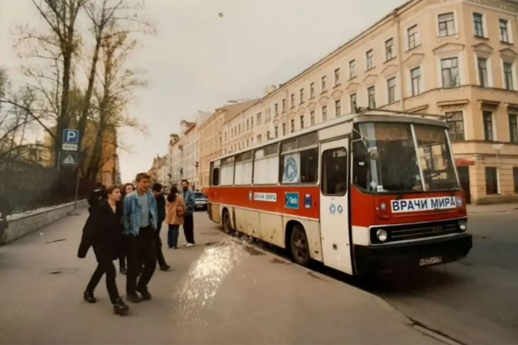 На старых фотографиях до сих пор можно увидеть тот красный потрепанный автобус с логотипом «Врачей мира» на стекле: пузатым белым голубем поверх голубого фона.