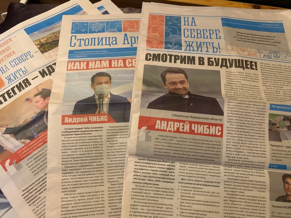 Выборы начинаются задолго до официального старта. В Мурманской области их приближение ознаменовал запах типографской краски. В апреле почтовые ящики обильно орошала печатная продукция с изображениями губернатора Андрея Чибиса, сенатора Татьяны Кусайко и нескольких действующих депутатов-единороссов. Четырехполосная газета называлась «На Севере жить!» — это любимый слоган главы региона, который можно прочесть на произведениях его пиар-команды: скамейках, баннерах, подарках новорожденным и даже футболках, заказанных в промышленных масштабах кожвендиспансером.