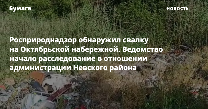 Ведомство организовало проверку после обращения граждан, в ходе которой была обнаружена свалка на Октябрьской набережной (участок 107 северо-западнее дома 38 лит. БН). Свалка расположена на земле, которая предназначается для строительства объектов физической культуры.