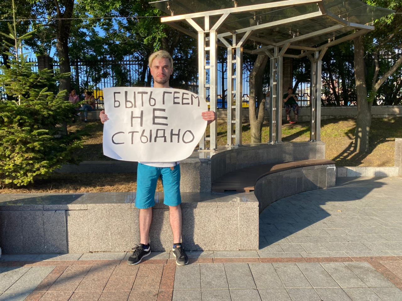 Во Владивостоке 22-летний активист Илья Летуновский вышел в центр города на одиночный пикет с плакатом "Быть геем не стыдно". Эту акцию он провел в рамках общероссийской кампании против закона о гей-пропаганде, признанного ЕСПЧ дискриминационным. О том, что такое быть геем в российской провинции, зачем однополым парам право на брак, а российской власти – гомофобия, Илья рассказал редакции Сибирь.Реалии.