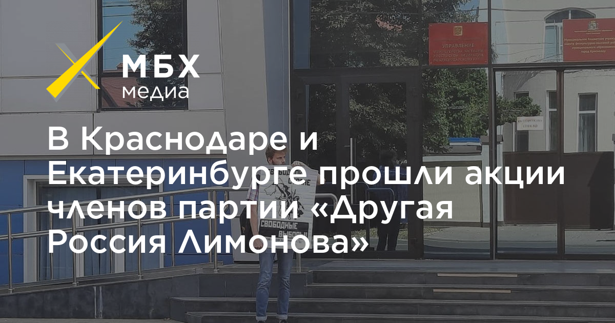 В Краснодаре активисты партии «Другая Россия Лимонова» провели серию пикетов возле здания краевого управления Минюста. Об этом «Юг. МБХ-медиа» сообщили в пресс-службе краснодарского отделения партии.