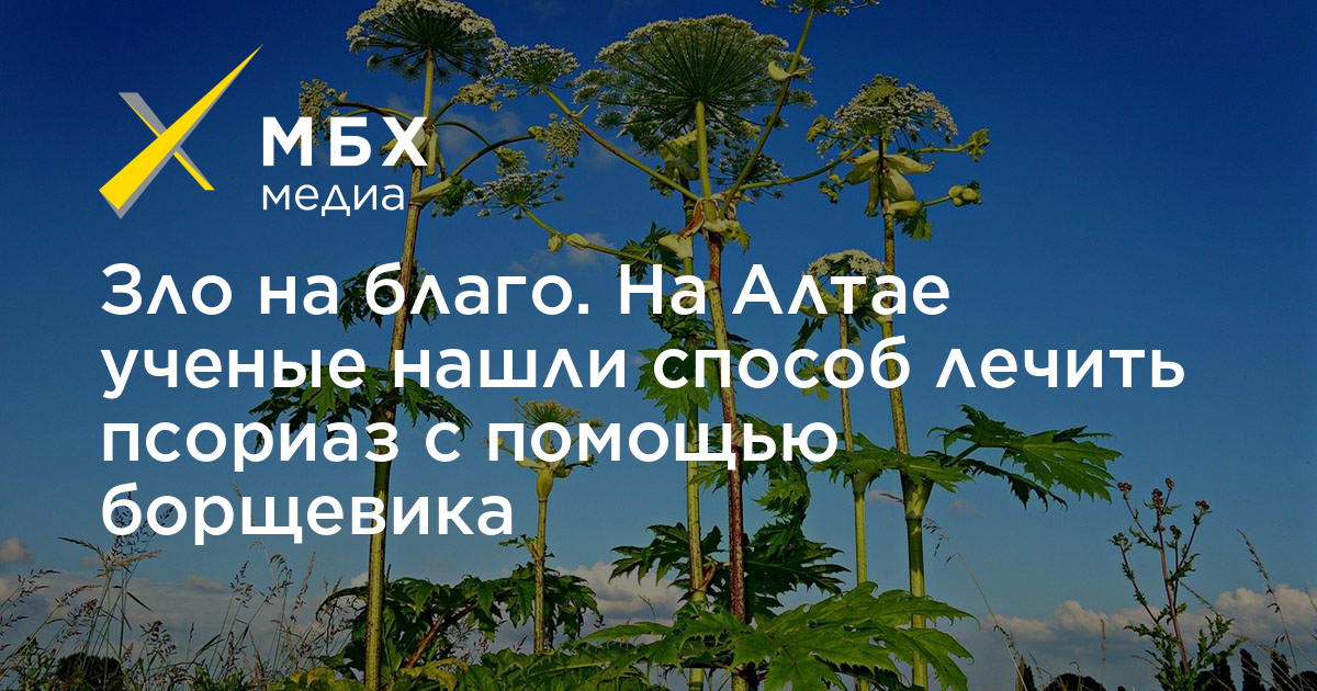 Группа молодых ученых Алтайского государственного университета придумала, как создать препарат от псориаза на основе листьев и плодов борщевика Сосновского. Эти части сорного растения, как выяснилось, богаты эфирными маслами, содержащими фуранокумарины – вещества, которые способны купировать кожные заболевания.