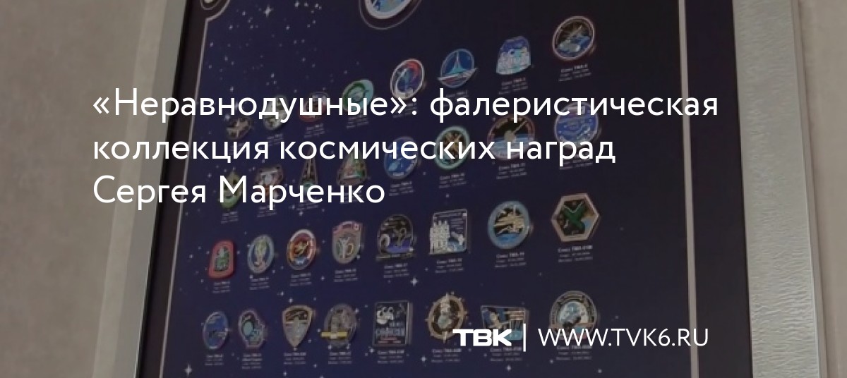 Коллекционер Сергей Марченко собирает космические награды. У него около 150 планшетов со значками, медалями и жетонами. Он коллекционирует награды всех людей, которые побывали в космосе – российских космонавтов, американских астронавтов, китайских тайконавтов и значки центра подготовки космонавтов, космических орбитальных станций. Эксперты говорят, что у Марченко одна из лучших фалеристических коллекций на тему космоса в стране. [фалеристика – вспомогательная историческая дисциплина, занимающаяся изучением истории орденов, медалей, значков, настольных медалей и плакеток, жетонов, фрачных миниатюр, наградных документов, а также любых нагрудных знаков]
