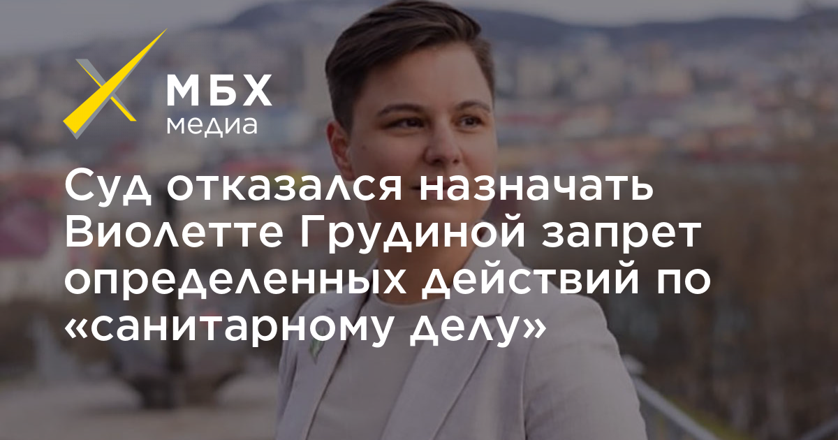 Октябрьский районный суд Мурманска отказался назначать Виолетте Грудиной запрет определенных действий по «санитарному делу» (ст. 236 УК). Об этом «МБХ медиа» сообщила глава предвыборного штаба Грудиной Наталья Заморская.