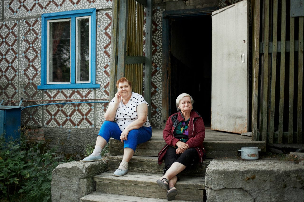 Жительницы поселка Лидия Крупенко и Любовь КукинаФото: Лиза Жакова для ТД Сначала мы едем на карьер, и там, если спуститься по тропинке вниз, на одной из полян в лесу оставлены ранцы и бутылки для воды. Мы забираем их и едем к станции. Говорят, там есть проклятое место, которое горит все время. По пути встречаем машину МЧС, просим у них воды, наполняем водой четыре ранца по 15 литров каждый.