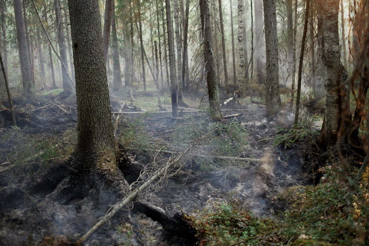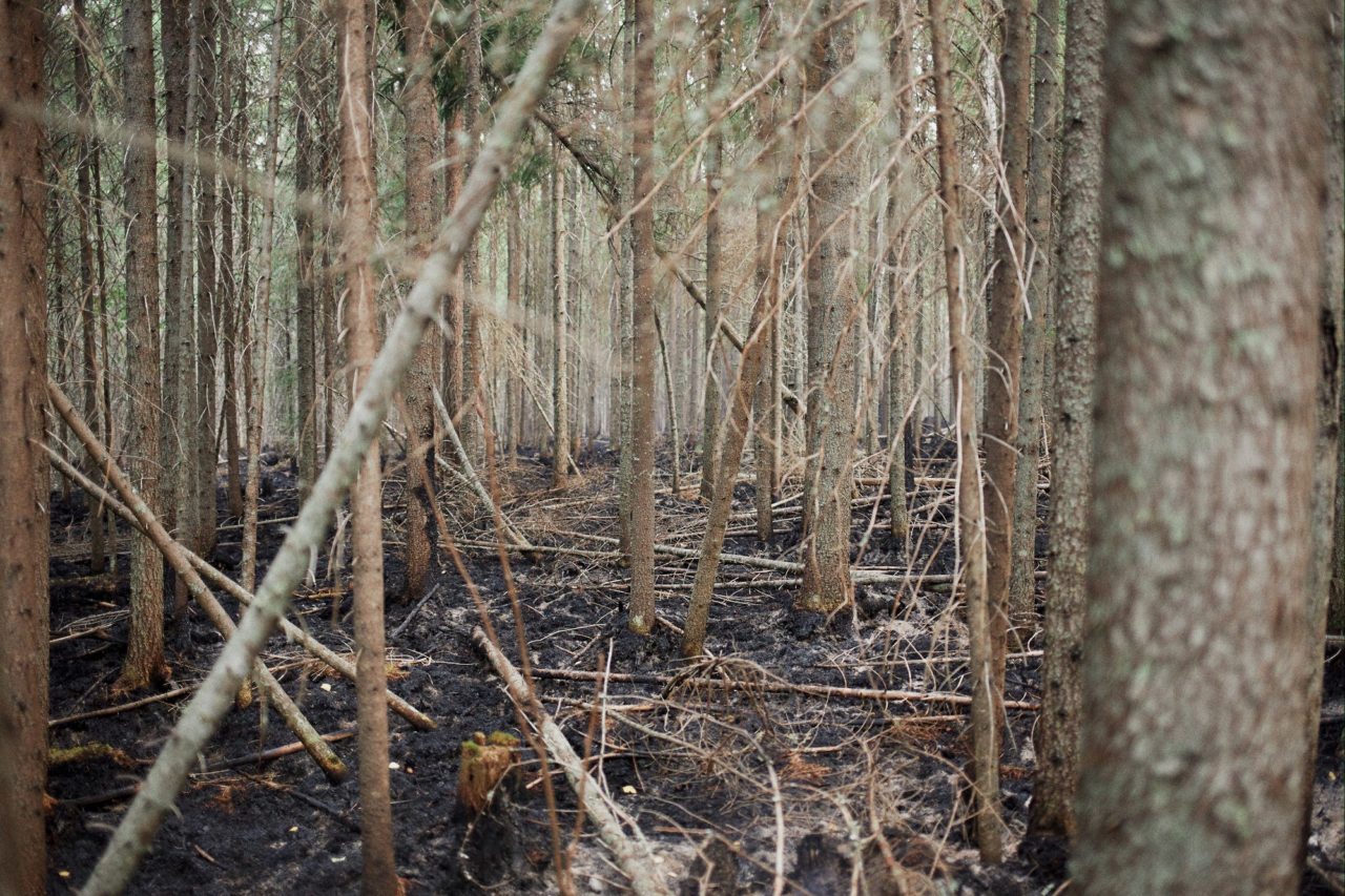 Выгоревший участок леса в окрестностях поселкаФото: Лиза Жакова для ТД добровольцы защита природы Карелия катастрофы и стихийные бедствия пожары фотоистории