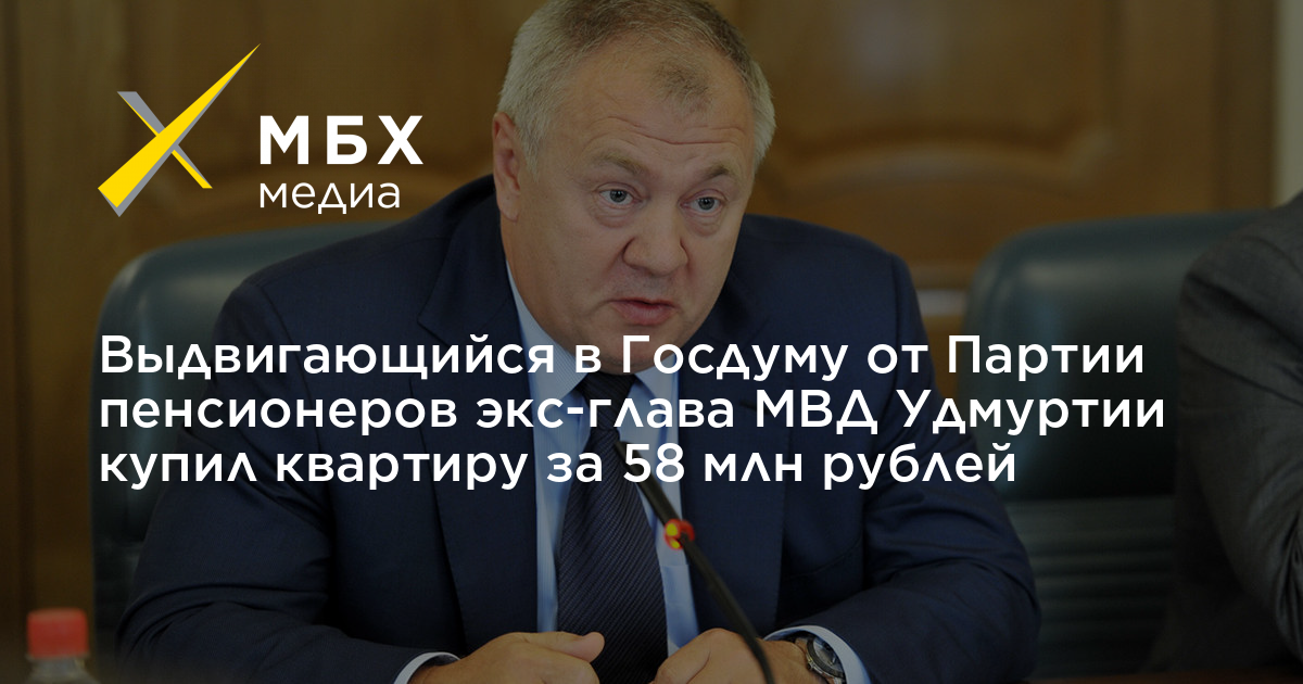 Выдвигающийся в Госдуму от Партии пенсионеров экс-глава МВД Удмуртии купил квартиру за 58 млн рублей