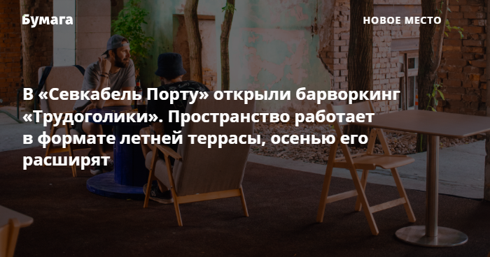 На территории общественного пространства «Севкабель Порт» открыли заведение «Трудоголики», сообщили «Бумаге» его представители. Проект назвали барворкингом — гибридная концепция сочетает в себе функции бара и коворкинга.