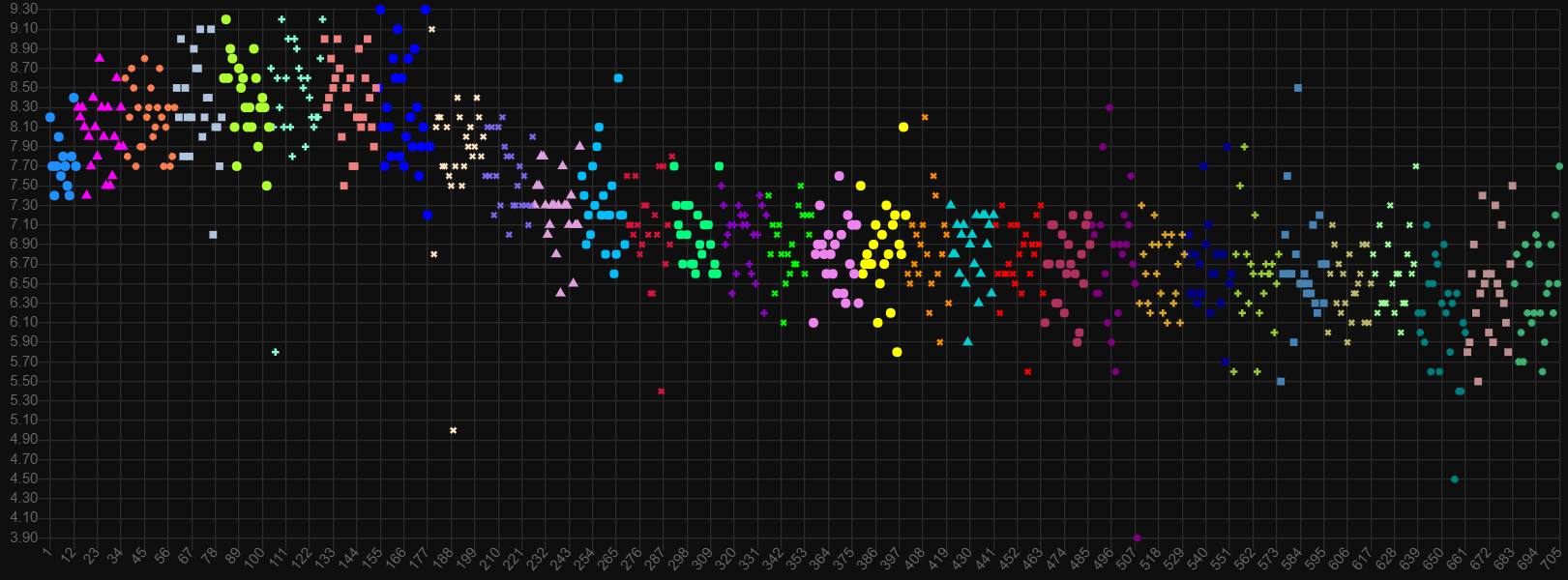 В Сети появился сайт, который собирает зрительские оценки эпизодов сериалов и строит по ним график. Его создатель — пользователь Reddit под ником Oamguru.