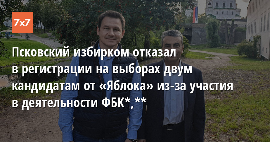 Псковский избирком отказал в регистрации на выборах двум кандидатам от «Яблока» из-за участия в деятельности ФБК*,**