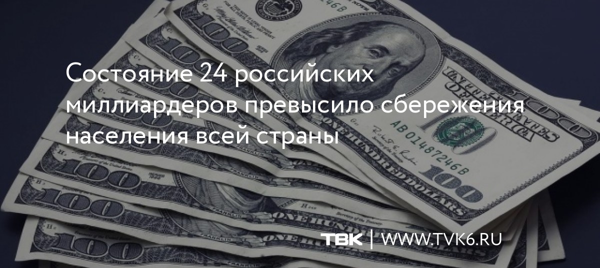 Состояние 24 российских миллиардеров превысило сбережения населения всей страны