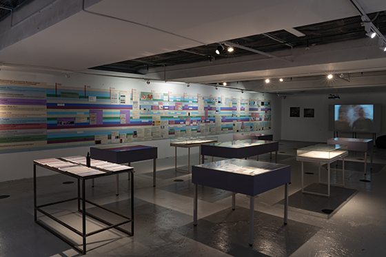 © Михаил Еремин «Комната архива» на выставке «Уют и Разум» Скажу несколько слов и о пространстве Разума, которое показалось Янчогло «неартикулированным» с точки зрения исследования (на выставке оно объединяло таймлайн, документацию и зал рейва). Документацию в основном представляли витрины с книгами и журналами — открытыми на одном развороте, а иногда и вовсе закрытыми, как, например, двухтомник «Пустотного канона». Закрытые книги в застекленных витринах, документация документации, стали, на мой взгляд, правдивым образом доведенной до предела игры художников в прижизненную концептуализацию. То, что должно было быть открытым, прочитанным или хотя бы пролистанным, оказалось музеефицировано, лишено функциональности и предельно эстетизировано. К залу Разума неспроста примыкал зал, посвященный рейву: рейв — дело коллективное, но комната пуста, и это отсутствие людей создавало диссонанс и дискомфорт. Такой эффект отсылает и к прижизненной концептуализации, и к пустотности как таковой, а в самом прямом смысле воплощает отсутствие и запустение.