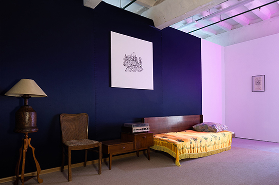 Выставка открывалась инсталляцией «Комната за перегородкой. Государственная квартира на Речном»: именно с этой реконструкции интерьера 1990-х начинались кураторские экскурсии. Попадая в эту обитель уюта, посетитель замечал проникающий в нее фиолетовый неоновый свет, который считывался как сонное наваждение. Комната обозначалась кураторами как место сна, и сны стали основной и явно акцентированной темой выставки. Кураторский манифест содержал в названии «сон золотой», и даже инстаграм выставки (указанный на стенах внутри экспозиции, а значит, задуманный как полноценная часть проекта) назывался @dreamsof90s.