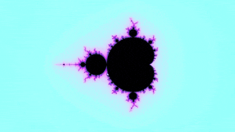 А вот визуализация множества Мандельброта — единого фрактала, содержащего в себе бесконечное число совершенно непохожих друг на друга фракталов (все ответвления не копии, среди них нет двух абсолютно идентичных) в виде гигантского массива множеств Жюлиа, расположенных вдоль его границы.