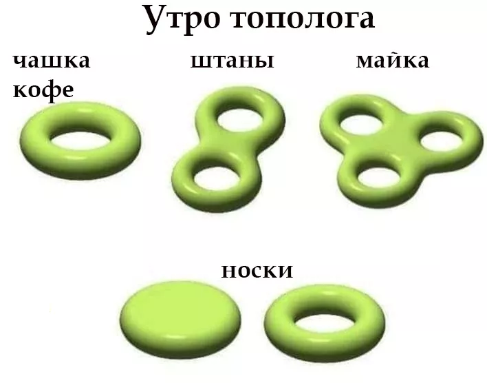 Еще один «резиновый» раздел математики — топология, где изучают свойства пространств, остающихся неизменными при непрерывных деформациях (то есть, когда форма объекта меняется, но при этом сам он не разрезается и в нем не проделываются новые отверстия).