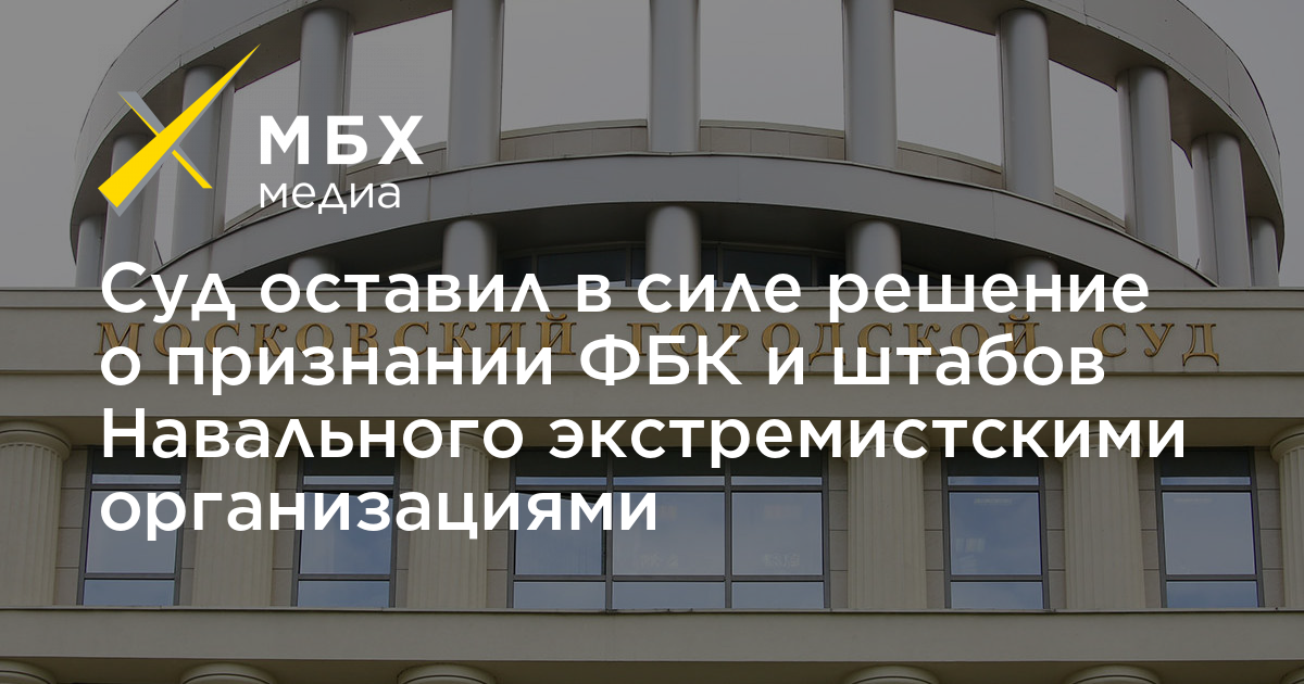 Суд оставил в силе решение о признании ФБК и штабов Навального экстремистскими организациями