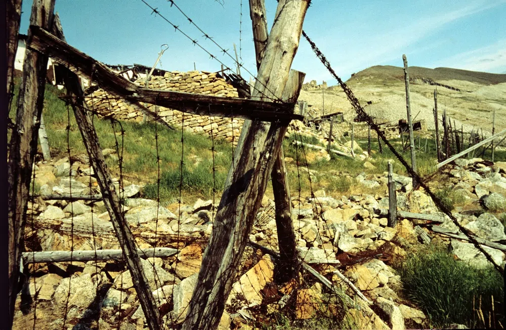 а музея или мемориала тут не предвидится. Колеи заросли, тропы и склоны обильно усеяны ржавыми свидетельствами былого ужаса: кусками колючей проволоки, котелками, скобами… Случайным складом лежит на камнях обувь, сделанная заключенными из кусков шин, скрепленных гвоздями…