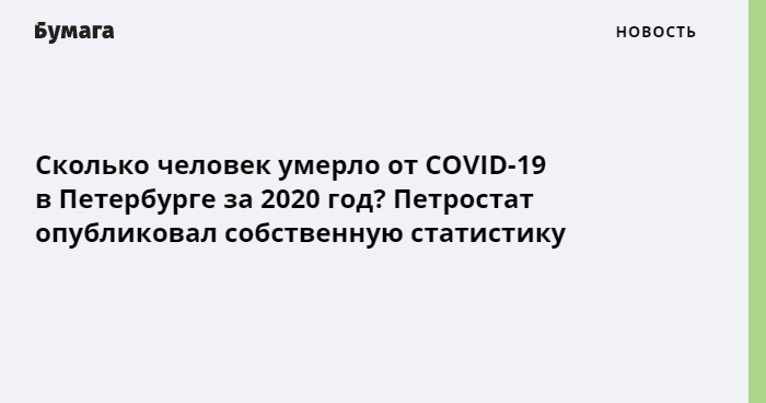 Основной причиной смертности стали сердечно-сосудистые заболевания — 36 576 случаев. От коронавируса в 2020 году, по данным Петростата, умерло 11 383 человек. При этом федеральный оперштаб говорил о других данных: на 1 января 2021 года зафиксировали 7845 летальных случаев.