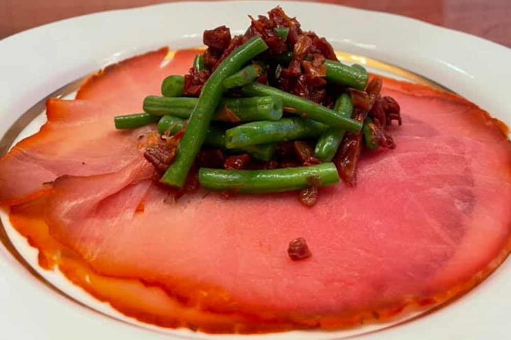 Кухню заведения выстроили вокруг рыбы и морепродуктов, а главной гастрономической идеей стало стремление к чистым вкусам исходных продуктов. Сейчас в заведении действует небольшое меню на двенадцать позиций. В него включили карпаччо и тартары, два супа и основные блюда — например, соте из вонголе.