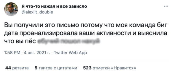 «Команда биг дата проанализировала ваши активности и выяснила, что вы пёс»