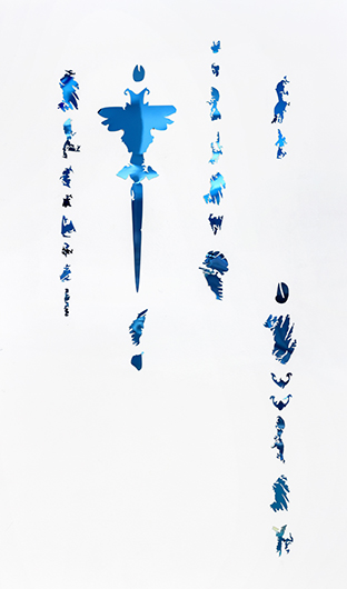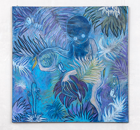 © Представлено Anna Nova Gallery «Мотылек и летучая мышь летят на свет» — Особой поэтикой в проекте обладает синий цвет. Он появляется и в видео, и в инсталляции. Расскажи, что он означает.