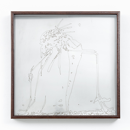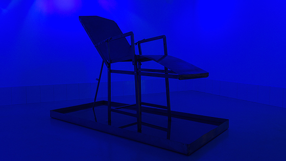 — Это такая тотальная инсталляция, в которую интегрирован перформанс. Важно, что вдоль плинтуса первых двух залов галереи стелется керамическая плитка. Она может показаться незаметной, но это деталь, которая начинает создавать атмосферу и визуальный язык пространства. В инсталляции присутствует металлическая отполированная кушетка, которая, с одной стороны, отсылает к медицинскому дискурсу, напоминая то ли гинекологический стул, то ли операционный стол, то ли медицинское стоматологическое кресло, а с другой, сама по себе похожа на несуразное существо насекомоподобного вида. У кушетки неверные пропорции, поэтому, когда вы находитесь рядом с ней, вы уже ощущаете диссонанс на интуитивном уровне. С этим странным объектом взаимодействуют перформеры, чья хореография напоминает три стадии развития мотылька: личинку, гусеницу и имаго. Это уже не человек, но это еще не насекомое. Какое-то пограничное состояние, некая субстанция, существо, creature.