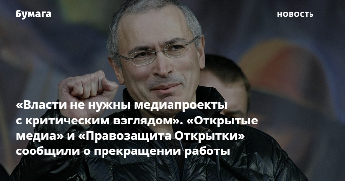 «Открытые медиа» и «Правозащита Открытки» закрываются