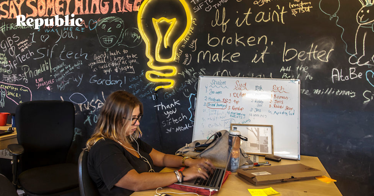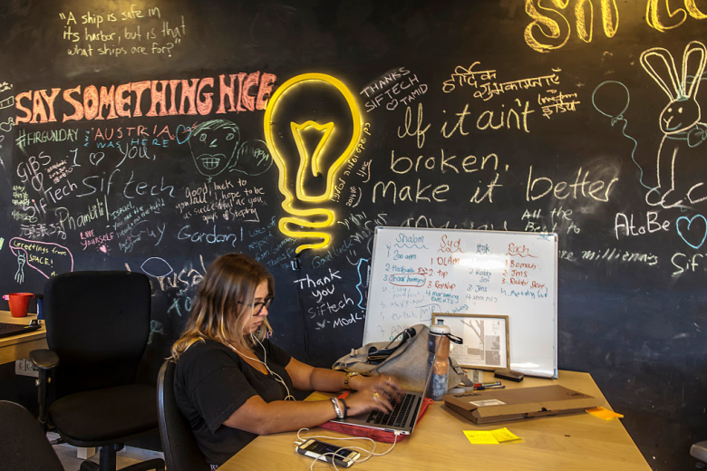 Сотрудник в офисе стартап инкубатора JVP Media Labs