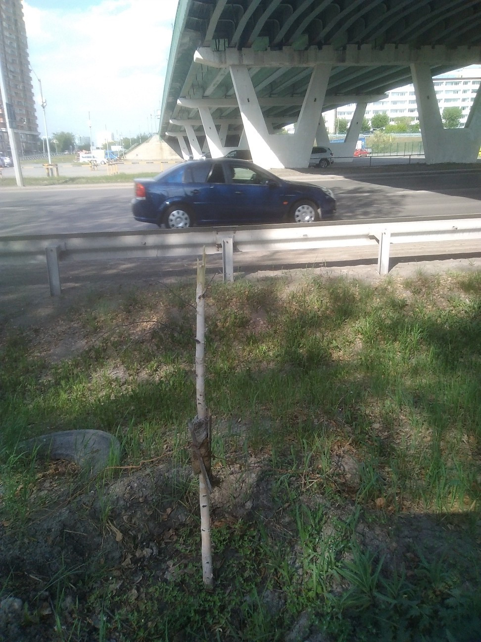 Я волей-неволей наблюдаю картину "смены" по большей части изношенного до изнеможения, парка деревьев в городе, проходя очень часто мимо группы саженцев под мостом через улицу Мельникайте. Они впервые были высажены вдоль ул. 50 лет ВЛКСМ в позапрошлом году в количестве 54 штук. Первый опыт борьбы за жизнь молодых березок оказался плачевным - не выжил ни один саженец. В прошлом сезоне на их месте появилось поколение next той же породы.