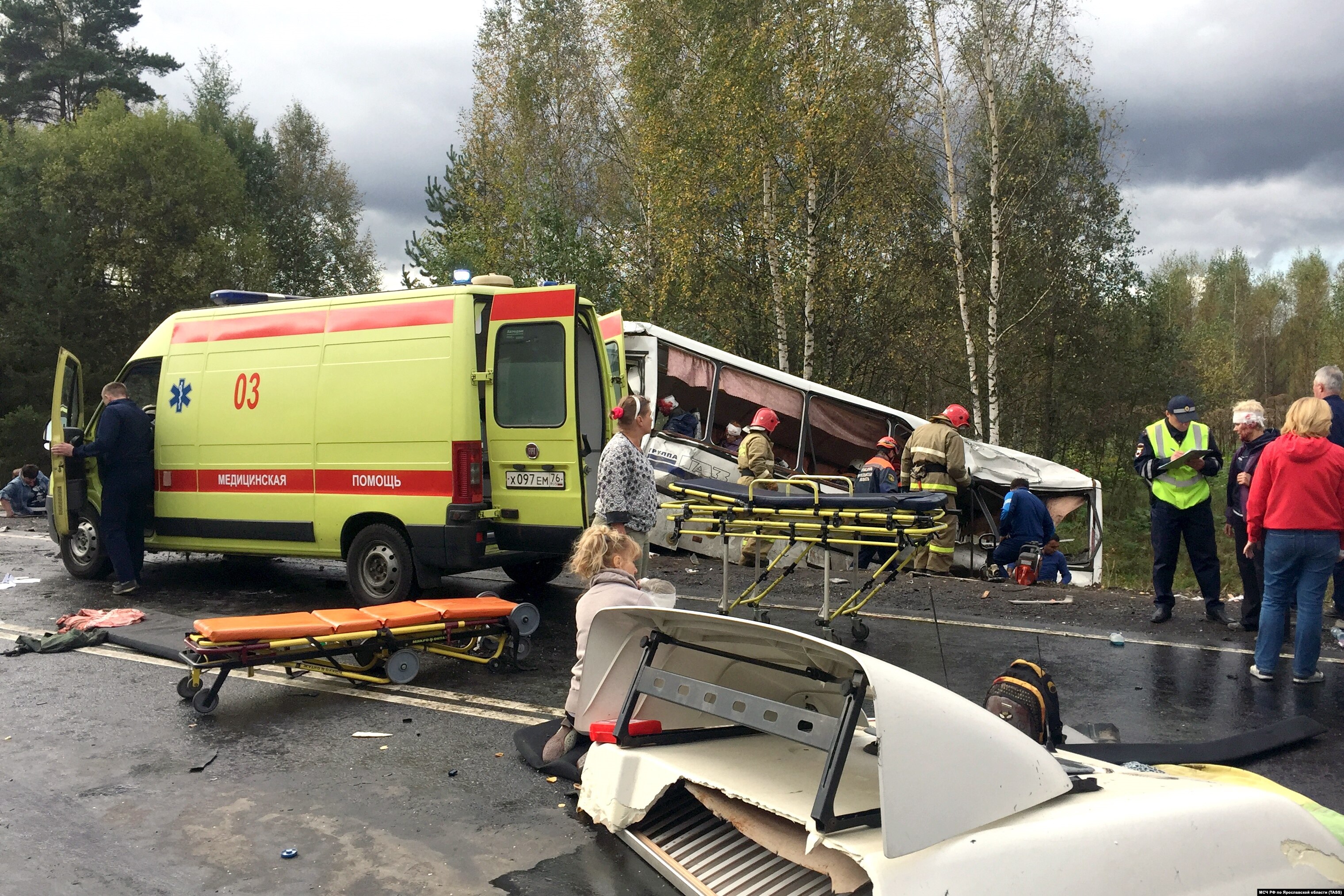 На момент ДТП в нем находились водитель и восемь пассажиров, в грузовике – водитель и пассажир. Все они доставлены в больницу для обследования.