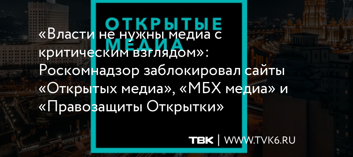 «Власти не нужны медиа с критическим взглядом»: Роскомнадзор заблокировал сайты «Открытых медиа», «МБХ медиа» и «Правозащиты Открытки»