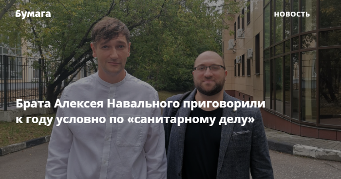 Преображенский суд Москвы приговорил Олега Навального — брата политика Алексея Навального — к одному году условно по «санитарному делу».