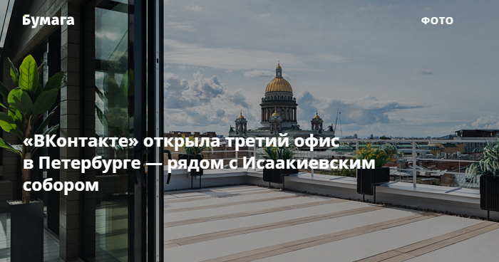 «ВКонтакте» открыла третий офис в Петербурге. Он находится в доме № 30 на Большой Морской улице — рядом с Исаакиевским собором, сообщили «Бумаге» в пресс-службе компании.