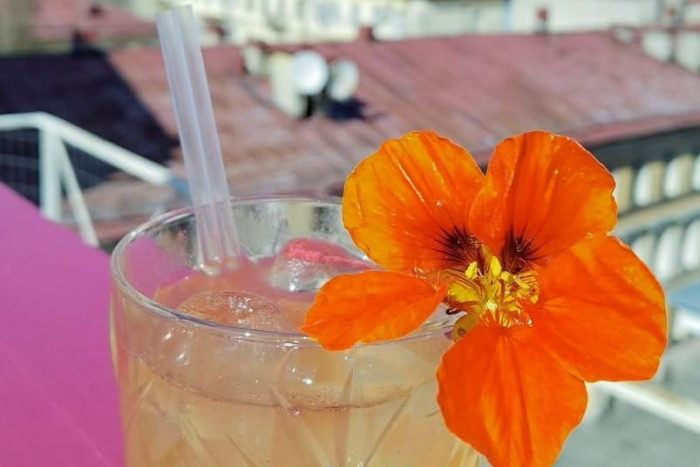 Этой зимой видовой бар на крыше особняка общества «Пальма» прославился благодаря прозрачным домикам, которые прозвали «террасой эпохи социальной дистанции». Сейчас домиков на крыше нет, но посетить панорамную веранду всё равно стоит: оттуда открывается вид на исторический центр. Меню довольно большое: гостям предлагают завтраки, пиццу, закуски и блюда на гриле. Из напитков заказать можно коктейли, вино (по бокалам разливают больше 30 позиций), а также чай или кофе. Предварительное бронирование обязательно, за видовые места заведение берет депозит в размере 1000 рублей с человека.