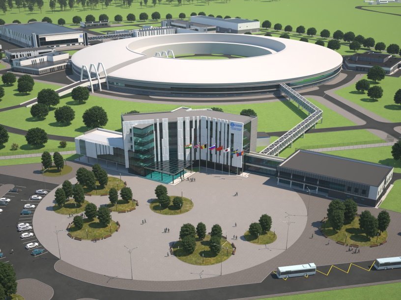 Основное здание планируемого объекта представляет собой круг диаметром около 230 метров, внутри которого находится кольцевой ускорительный комплекс, формирующий пучки электронов с заданными характеристиками. Ускорительный комплекс состоит из линейной системы инжекции электронов, бустерного синхротрона (бустера — для предварительного формирования пучков электронов) и основного кольца диаметром около 150 метров. Ускорительный комплекс будет окружен стеной биологической защиты для защиты персонала от воздействия радиации. Синхротронное излучение по специальным каналам, касательным к основному кольцу, сквозь стену биозащиты будет выводиться в экспериментальный зал шириной около 30 метров, окружающий ускорительный комплекс. При этом максимальная длина каналов вывода излучения составит 70 метров. В экспериментальном зале на каналах вывода синхротронного излучения в специализированных радиационно защищённых помещениях (хатчах) разместится основное оборудование экспериментальных станций. К фундаменту ускорительного комплекса и экспериментального зала предъявляются особые требования для обеспечения необходимой стабильности пучков излучения. К экспериментальному залу симметрично будут прилегать два корпуса, имеющих независимый фундамент. Эти корпуса, так называемые «крылья», предназначены для размещения специализированных экспериментальных станций длиной до 120 метров.