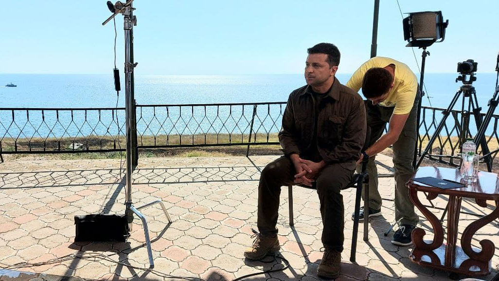 Президент Украины Владимир Зеленский в понедельник 9 августа дает интервью крымским журналистам, в рамках которого отвечает на вопросы представителей крымских СМИ о дальнейшей судьбе полуострова накануне предстоящего международного саммита «Крымская платформа».