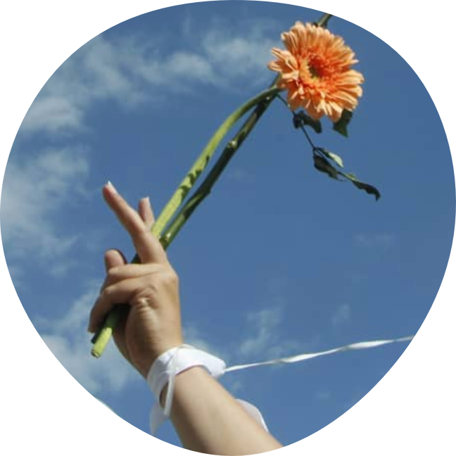 По дороге мы видели, как ОМОН избивает и ловит людей. Мы тогда еще с символикой шли, не знали, что за нее могут избить до полусмерти. Белый браслет могут в горло запихнуть.